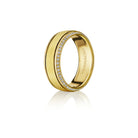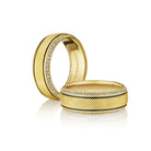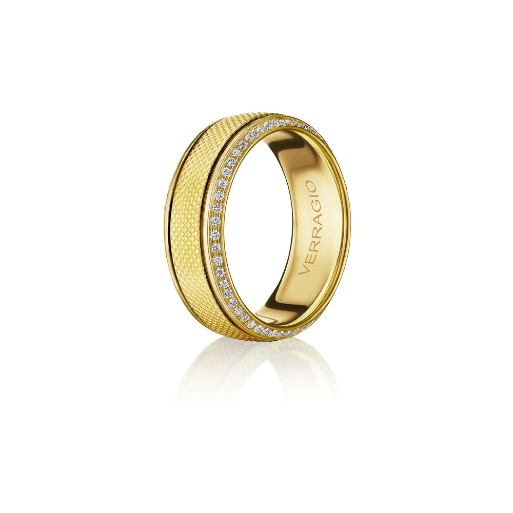 VWD-8913 is a textured embellished band enriched with a black rhodium trim adorned with pav�� diamond edges, perfect for a statement of strength and elegance.