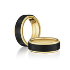 With this new two-tone design durable titanium meets an inner layer of lustrous gold with a sleek beveled edge. Choose black or gray titanium combined with either rose yellow or white gold to make this ring your own. Verragio' s Signature Beading along the edge adds sophisticated style while the bold 8mm width fits comfortably for everyday wear. Available in 14KT and Platinum
