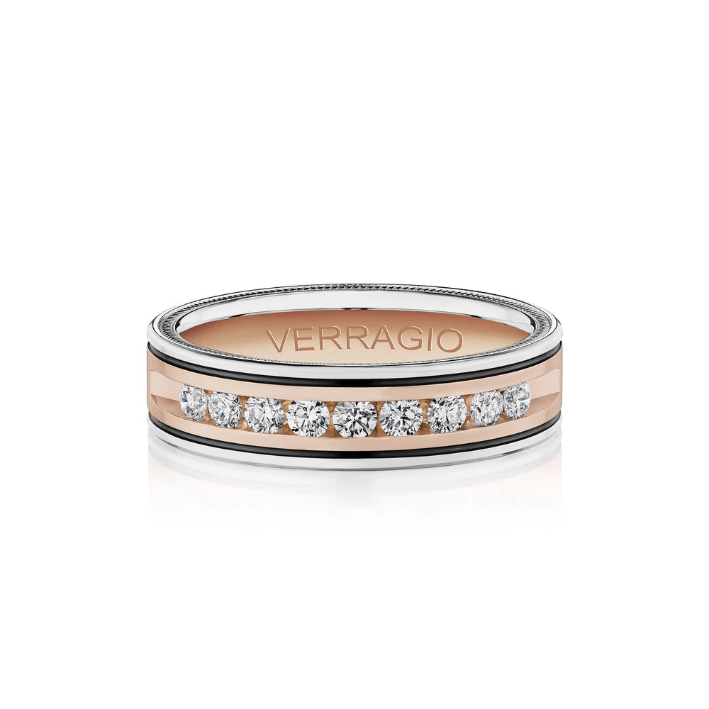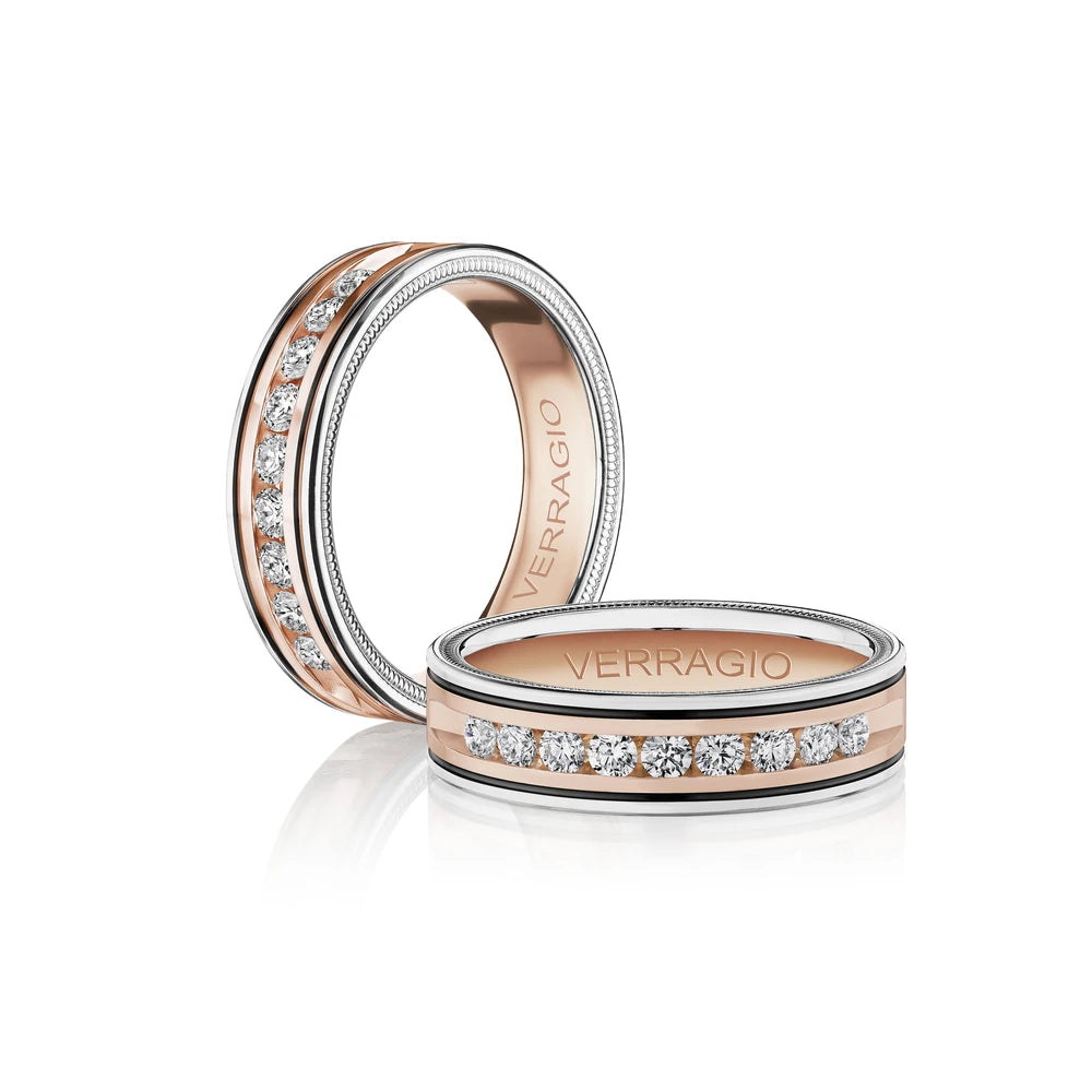 The VWRD-6702-2.5 stands out with its 6mm width and channel-set 2.50mm diamonds, elegantly accented with black enamel and detailed beading.. This design combines modern elegance with classic diamond allure, perfect for those who appreciate a sophisticated touch in their jewelry.
