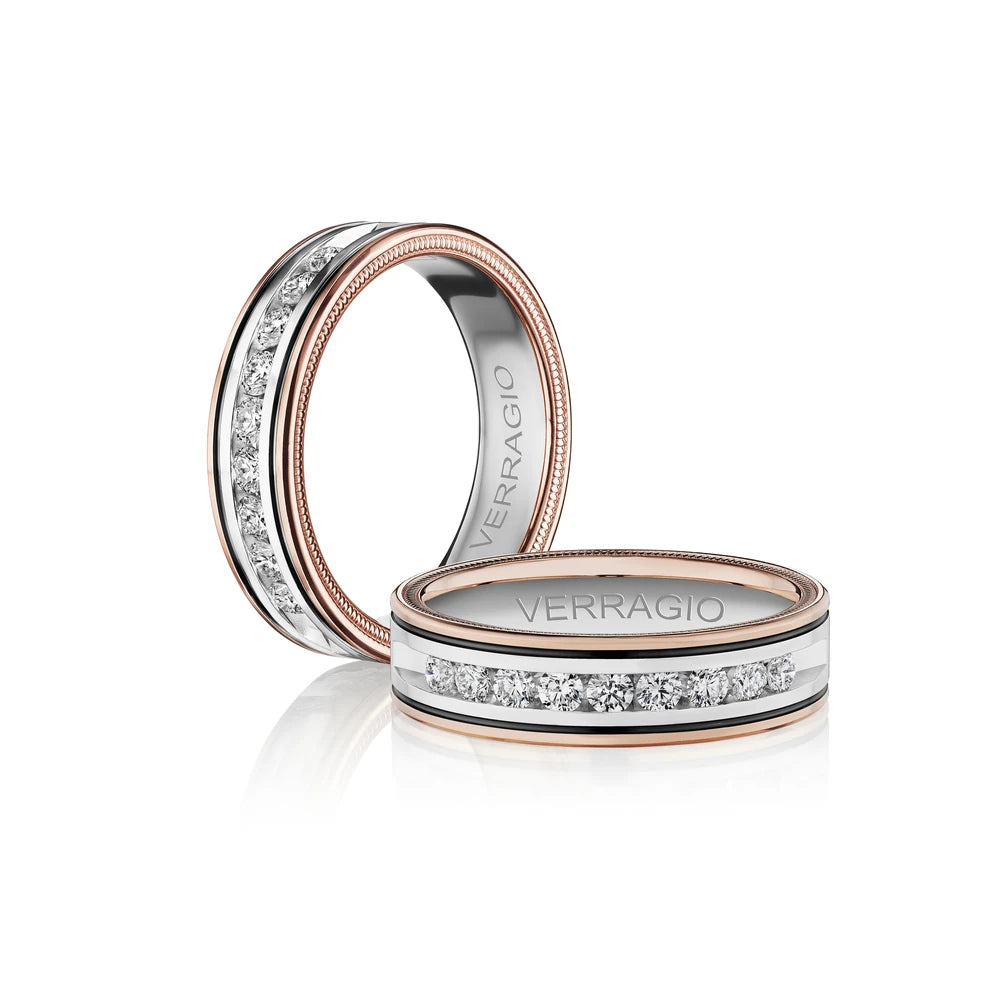 The VWRD-6702-2.5 stands out with its 6mm width and channel-set 2.50mm diamonds, elegantly accented with black enamel and detailed beading.. This design combines modern elegance with classic diamond allure, perfect for those who appreciate a sophisticated touch in their jewelry.