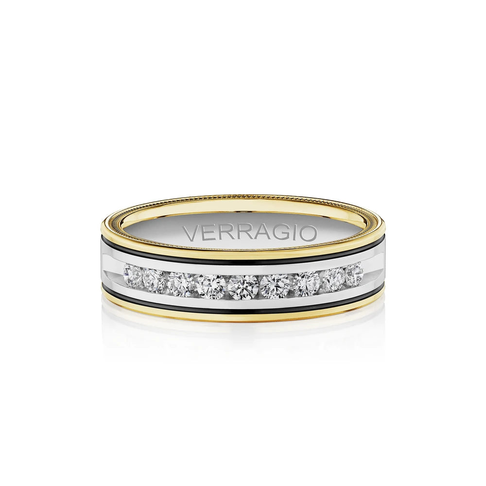 The VWRD-6702-2.5 stands out with its 6mm width and channel-set 2.50mm diamonds, elegantly accented with black enamel and detailed beading.. This design combines modern elegance with classic diamond allure, perfect for those who appreciate a sophisticated touch in their jewelry.