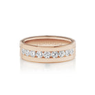 The VWRD-7703-3 is a 7mm channel-set diamond band, featuring 3.00mm stones elegantly highlighted by detailed beading along the edges. This band seamlessly combines the brilliance of diamonds with a refined finish, offering a clean and sophisticated look that is perfect for those who appreciate a minimalist yet luxurious style.
