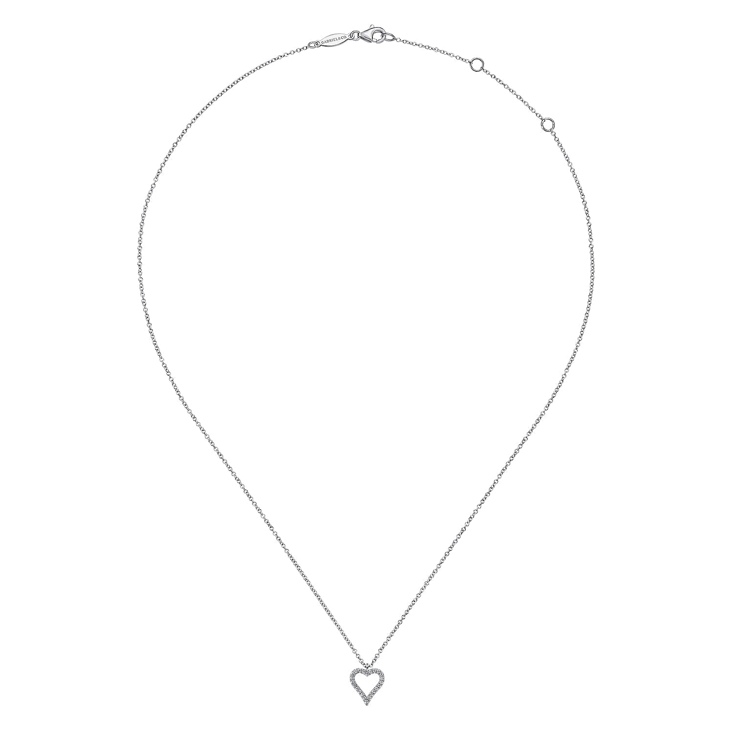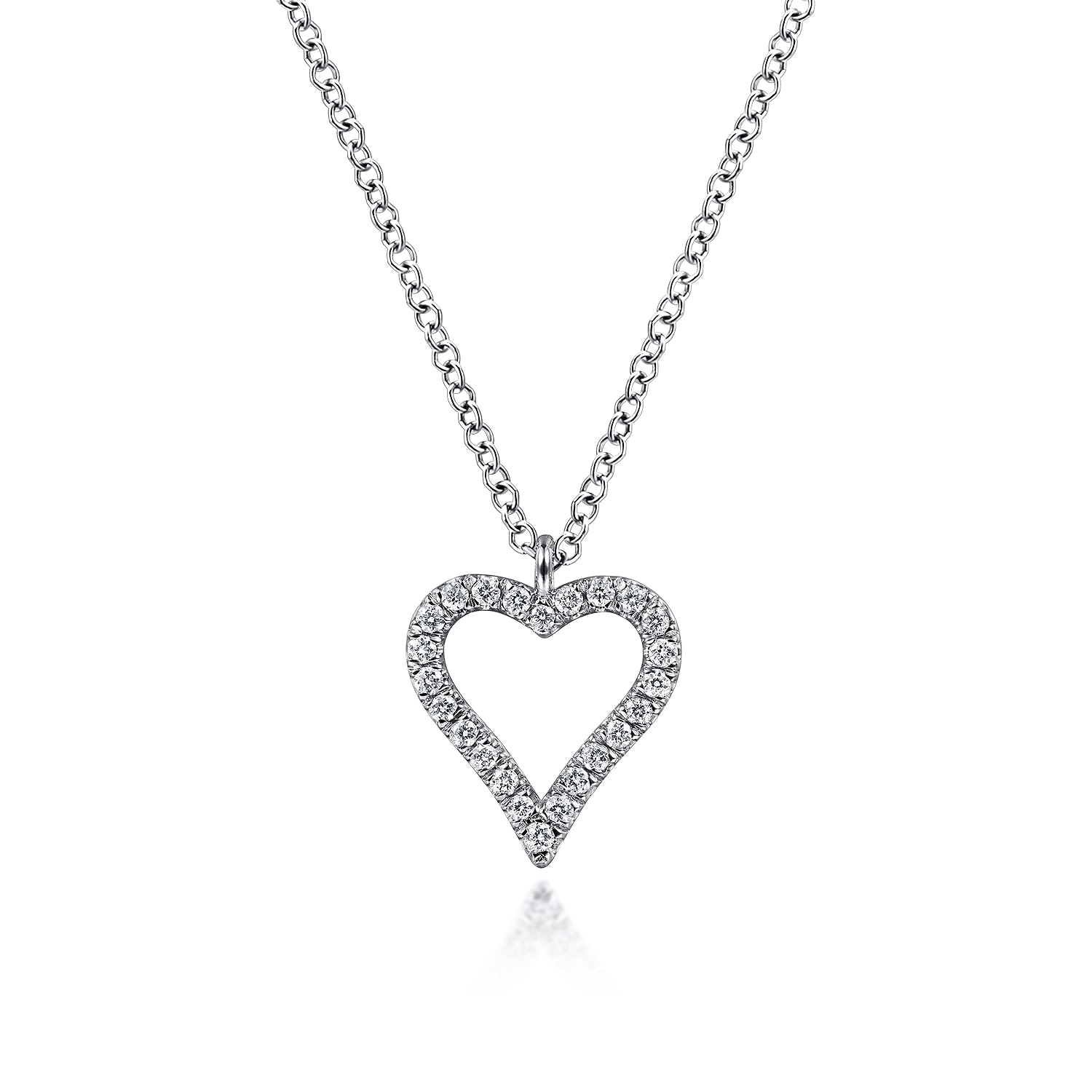 14K White Gold Pavé Diamond Open Heart Necklace