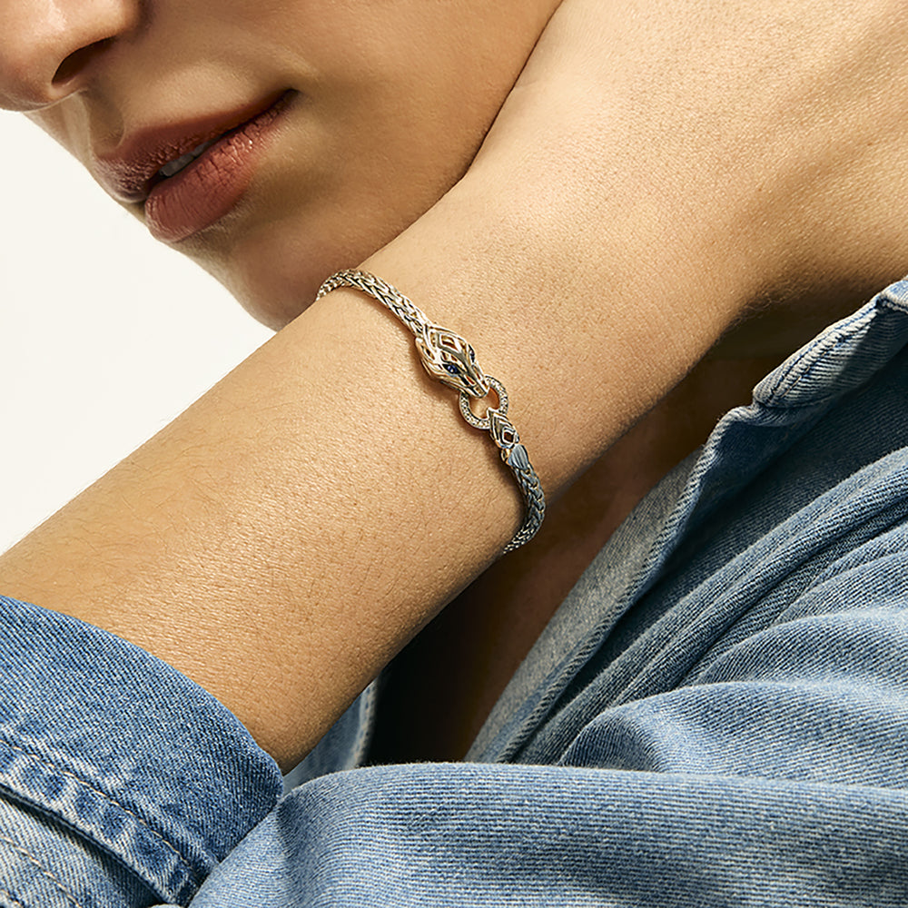 Naga Bracelet, Sterling Silver, Diamonds, Blue Sapphire, 3.5MM
