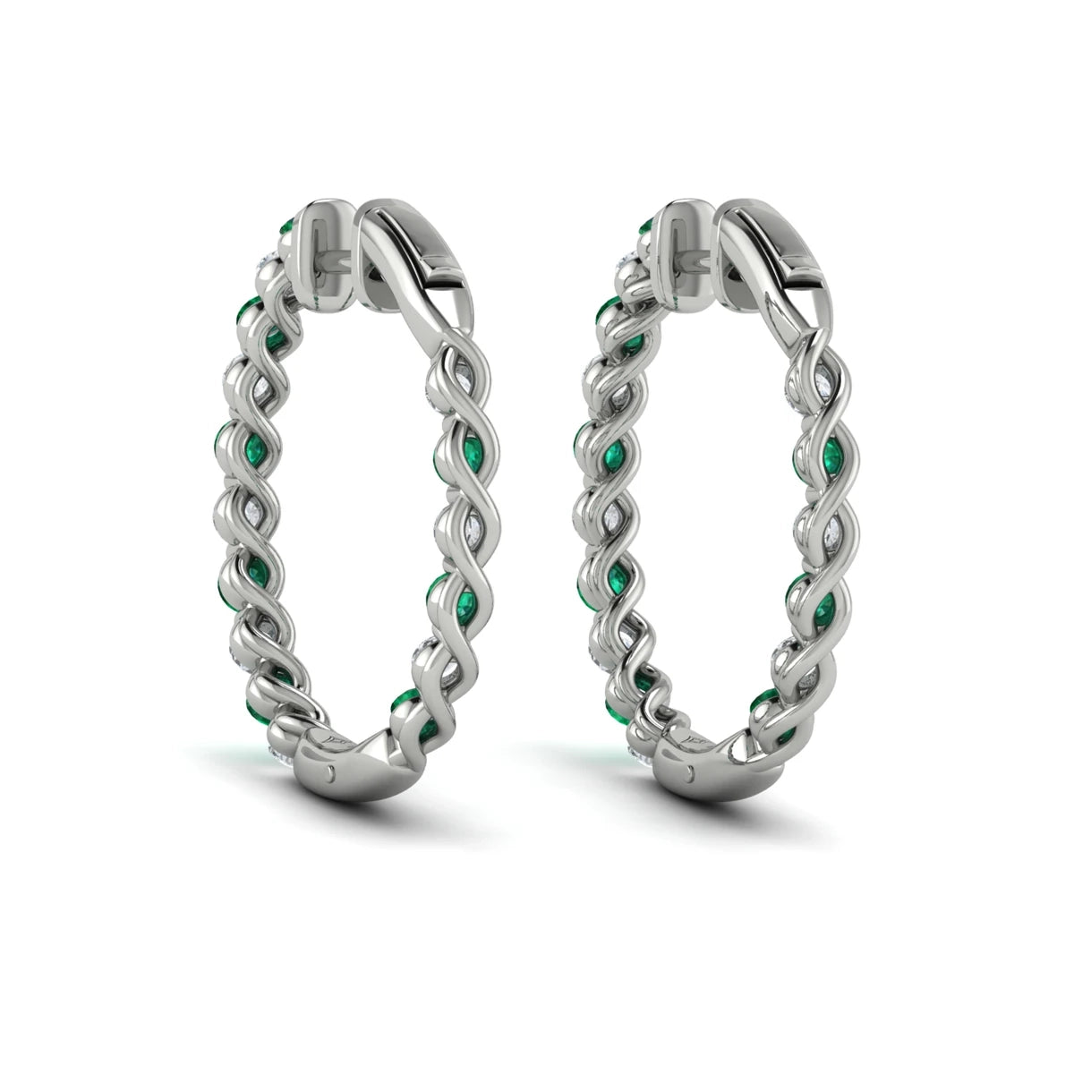 Inside Out Diamond and Emerald Hoop Earrings Platinum