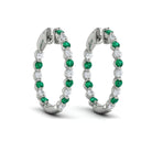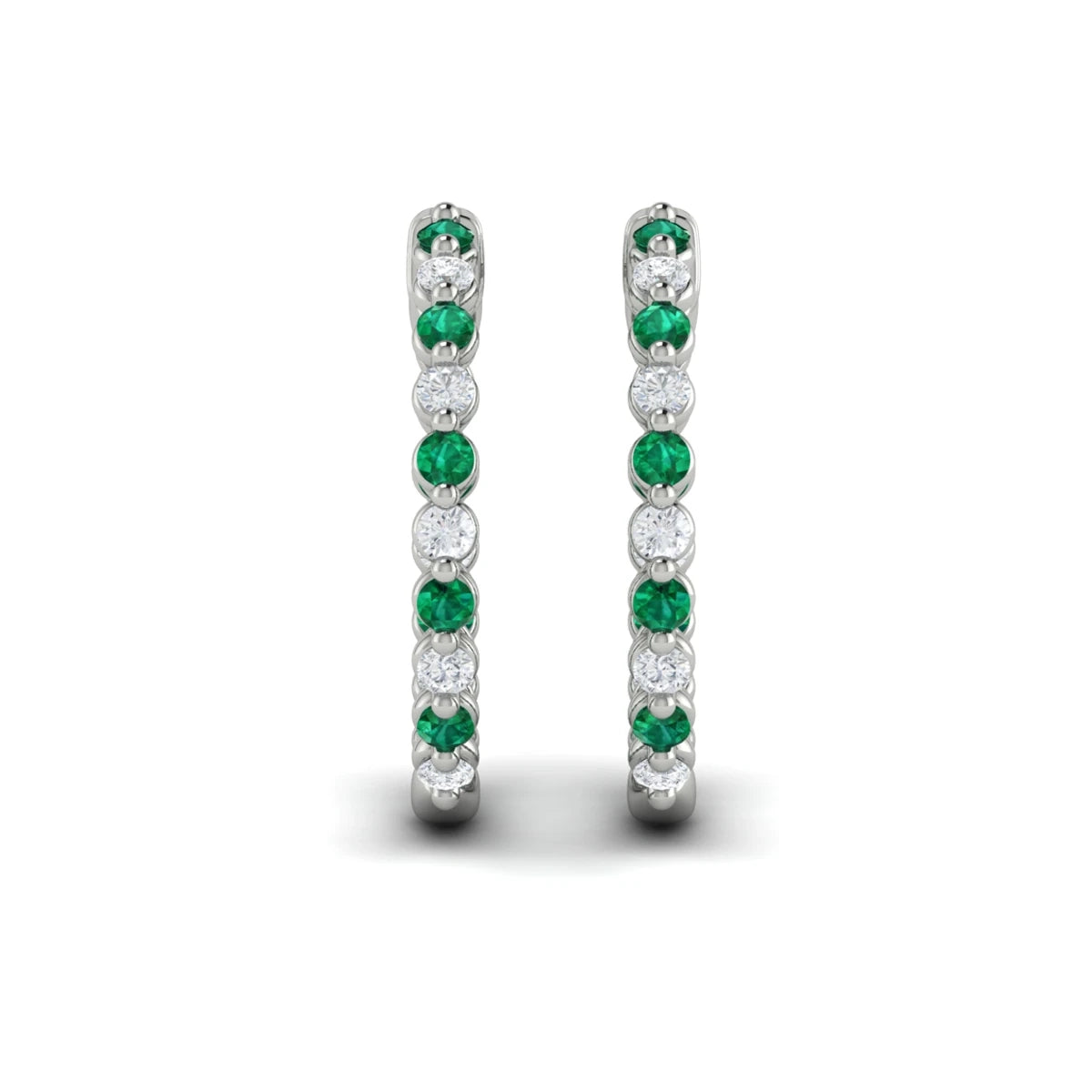Inside Out Diamond and Emerald Hoop Earrings White Gold