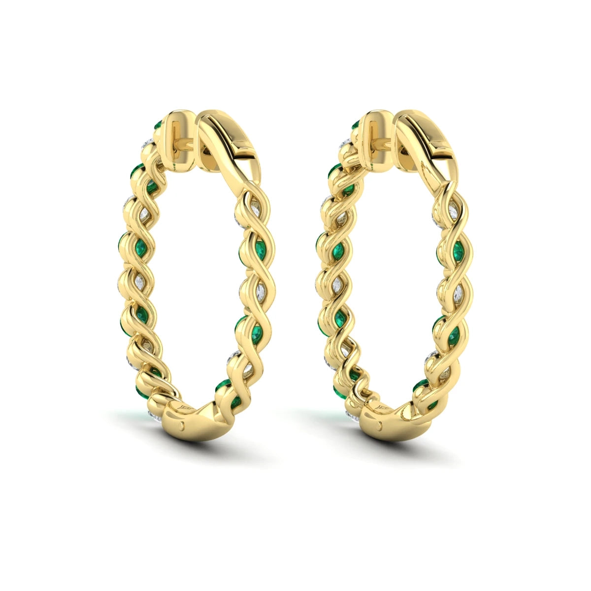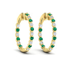 Inside Out Diamond and Emerald Hoop Earrings Yellow Gold