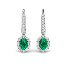 Oval Emerald and Diamond Baguette Earrings Platinum