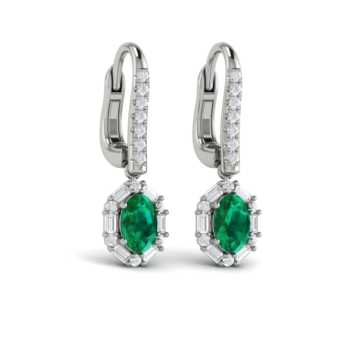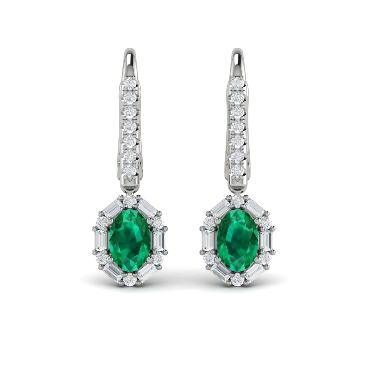 You're reviewing: Oval Emerald and Diamond Baguette Earrings White Gold