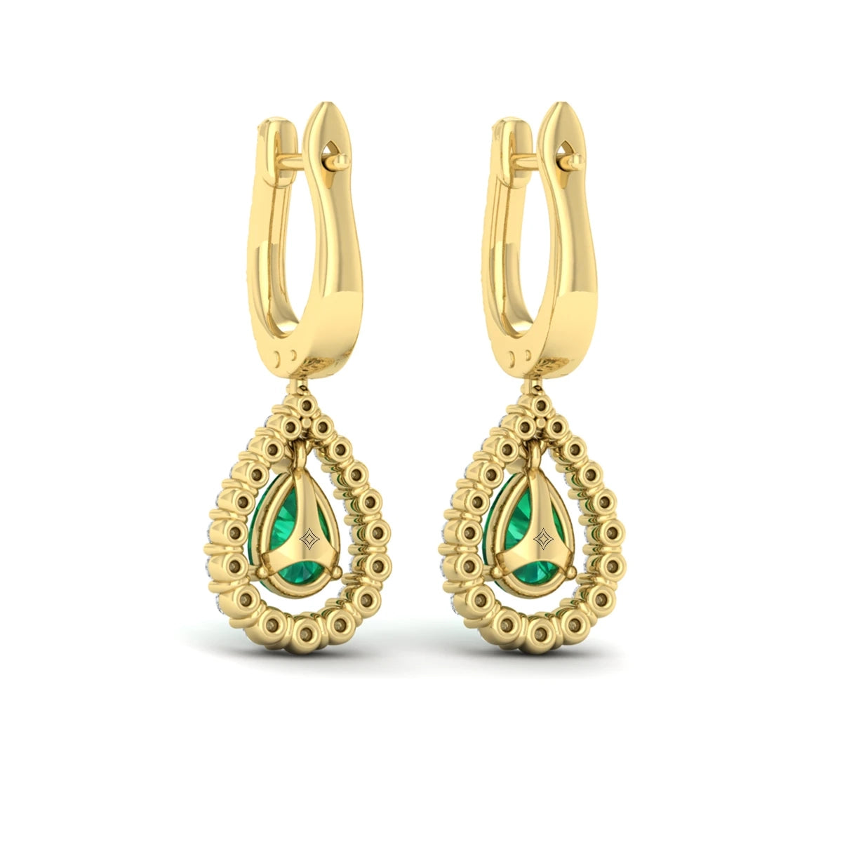 Tear Drop Emerald and Diamond Earrings Yellow Gold