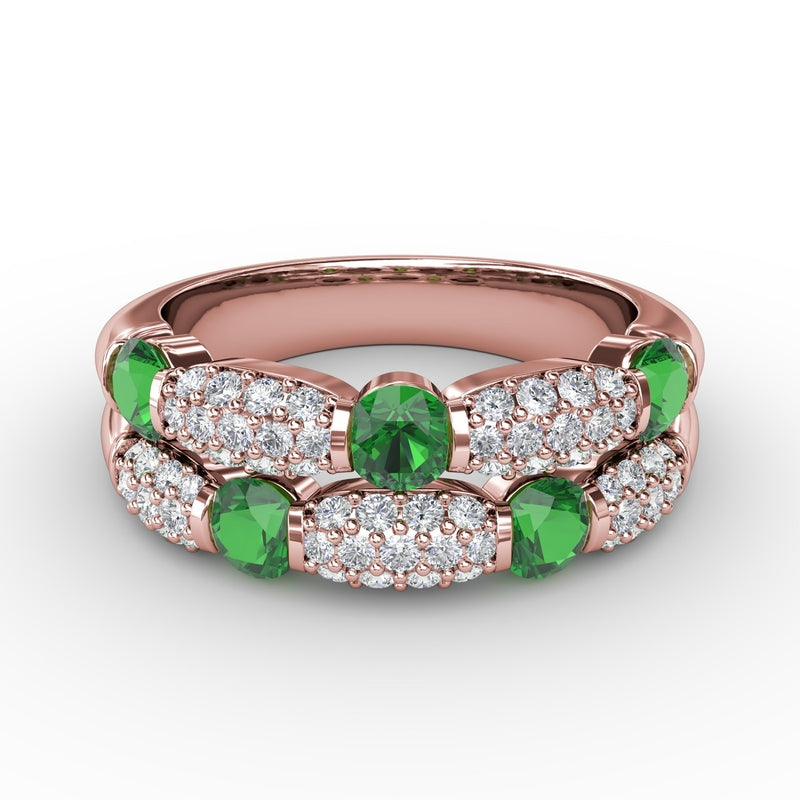Fana Double Row Emerald and Diamond Ring