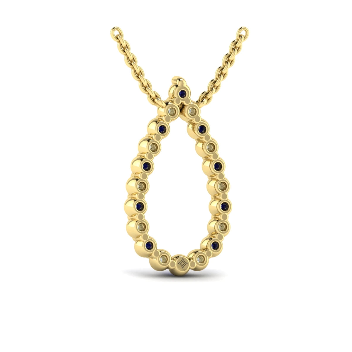 You're reviewing: Diamond and Blue Sapphire Open Teardrop Pendant Necklace Yellow Gold