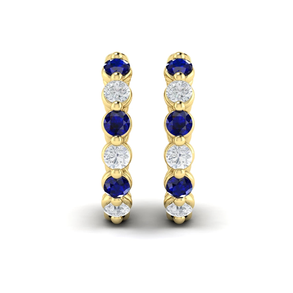 You're reviewing: Diamond and Blue Sapphire Twist Hoop Earrings Yellow Gold