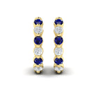 Diamond and Blue Sapphire Twist Hoop Earrings Yellow Gold