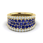 Diamond and Sapphire Multi-Row Statement Ring Yellow Gold