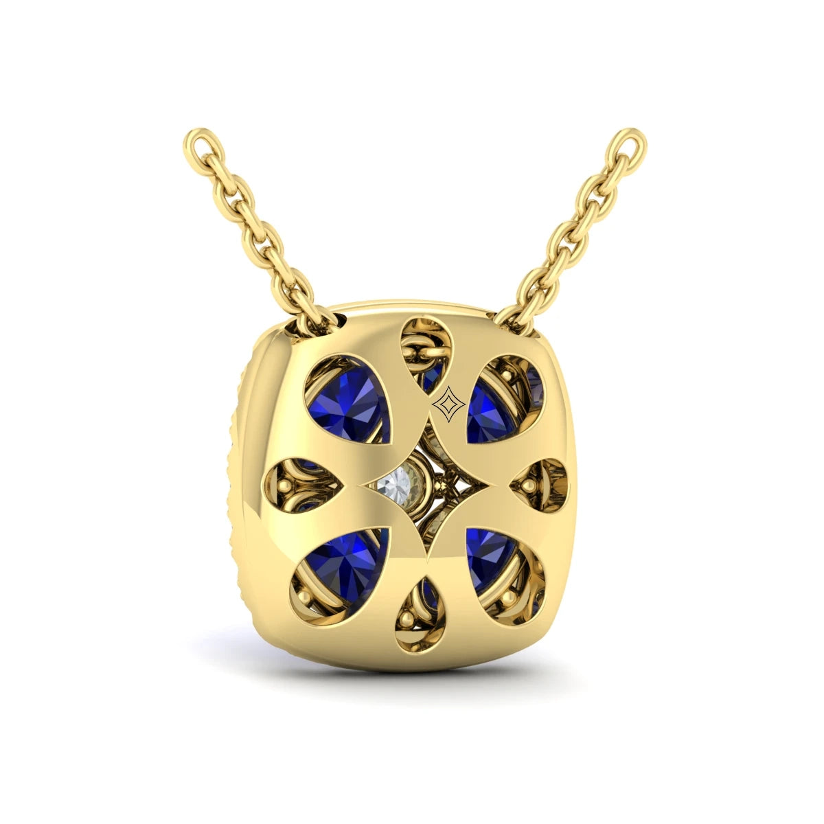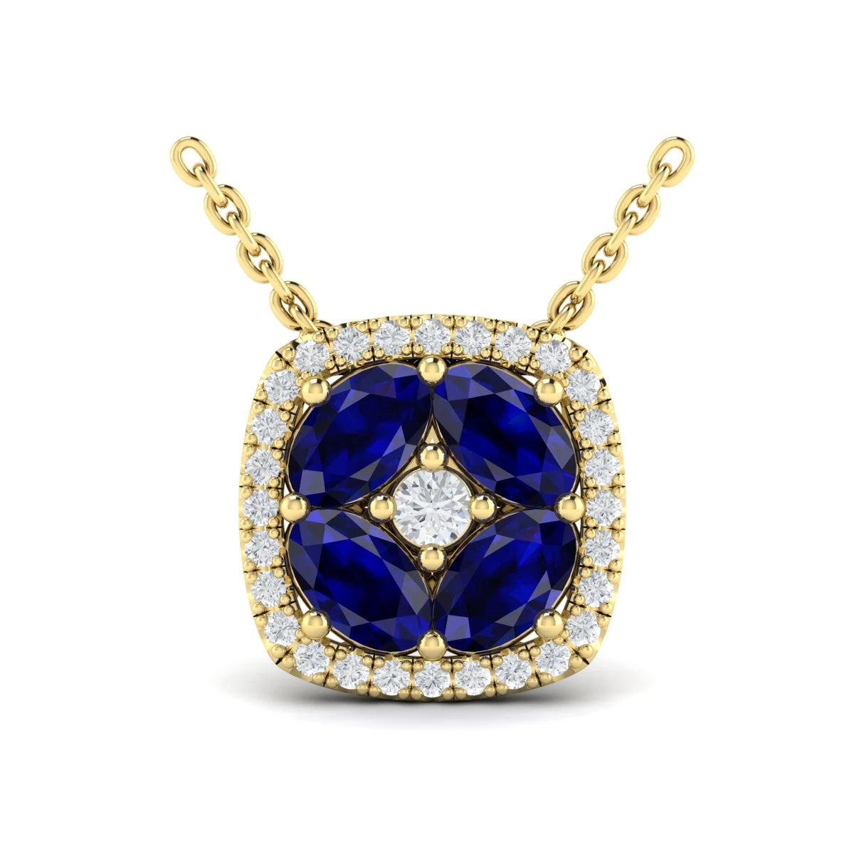 You're reviewing: Diamond Cushion Halo and Multi Oval Sapphire with Center Diamond Necklace Yellow Gold