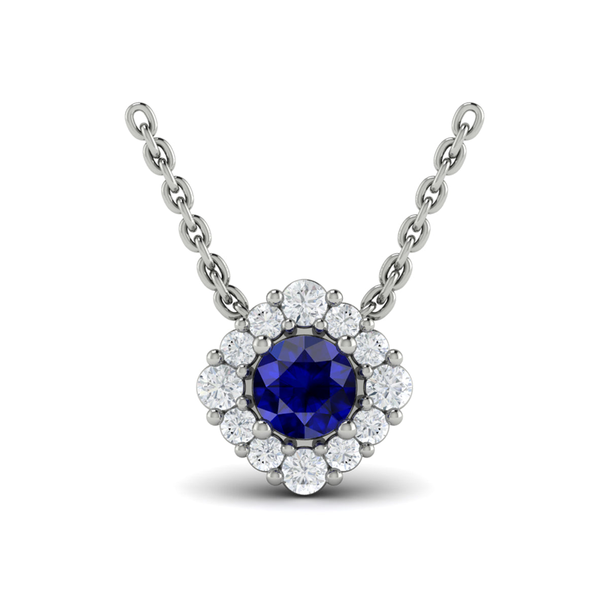 You're reviewing: Diamond Halo and Round Sapphire Center Pendant