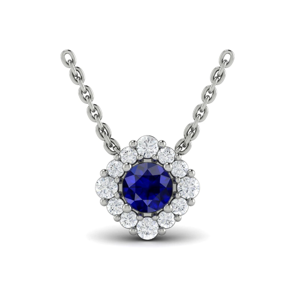 You're reviewing: Diamond Halo and Round Sapphire Center Pendant White Gold