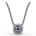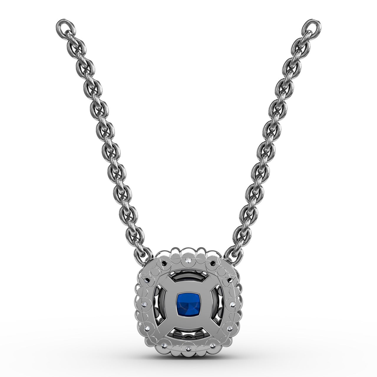 This classic round sapphire and diamond pendant comes in a variety of material types like 14k white gold, yellow gold, rose gold and can be customized. Fana gemstone pendants are perfect for that special woman in your life.