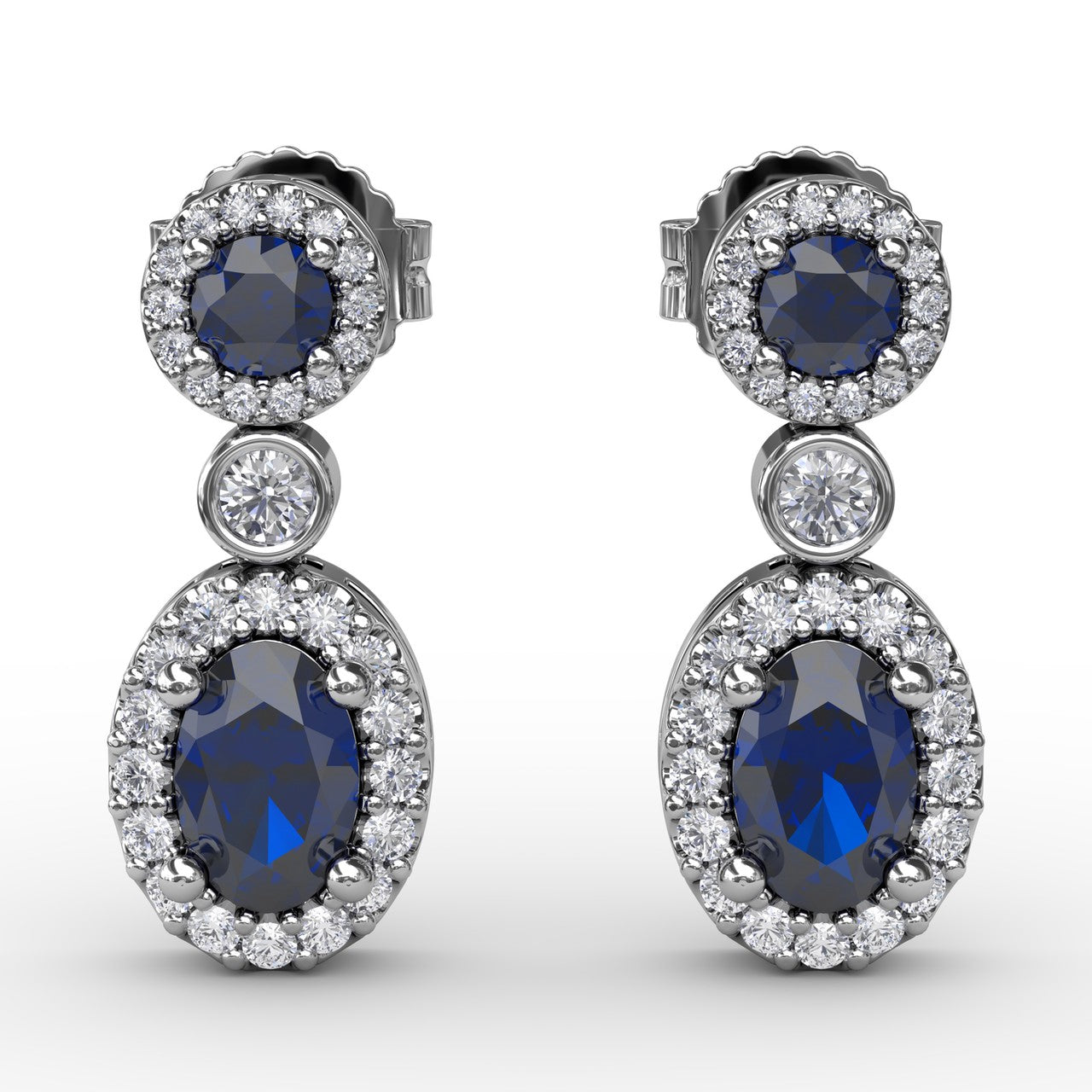 These set the scene sapphire and diamond dangle earrings come in a variety of material types like 14k white gold, yellow gold, rose gold and can be customized. Fana diamond earrings are perfect for that special woman in your life.