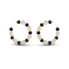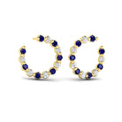 Forward-facing Diamond and Blue Sapphire Open Hoop Earrings Yellow Gold