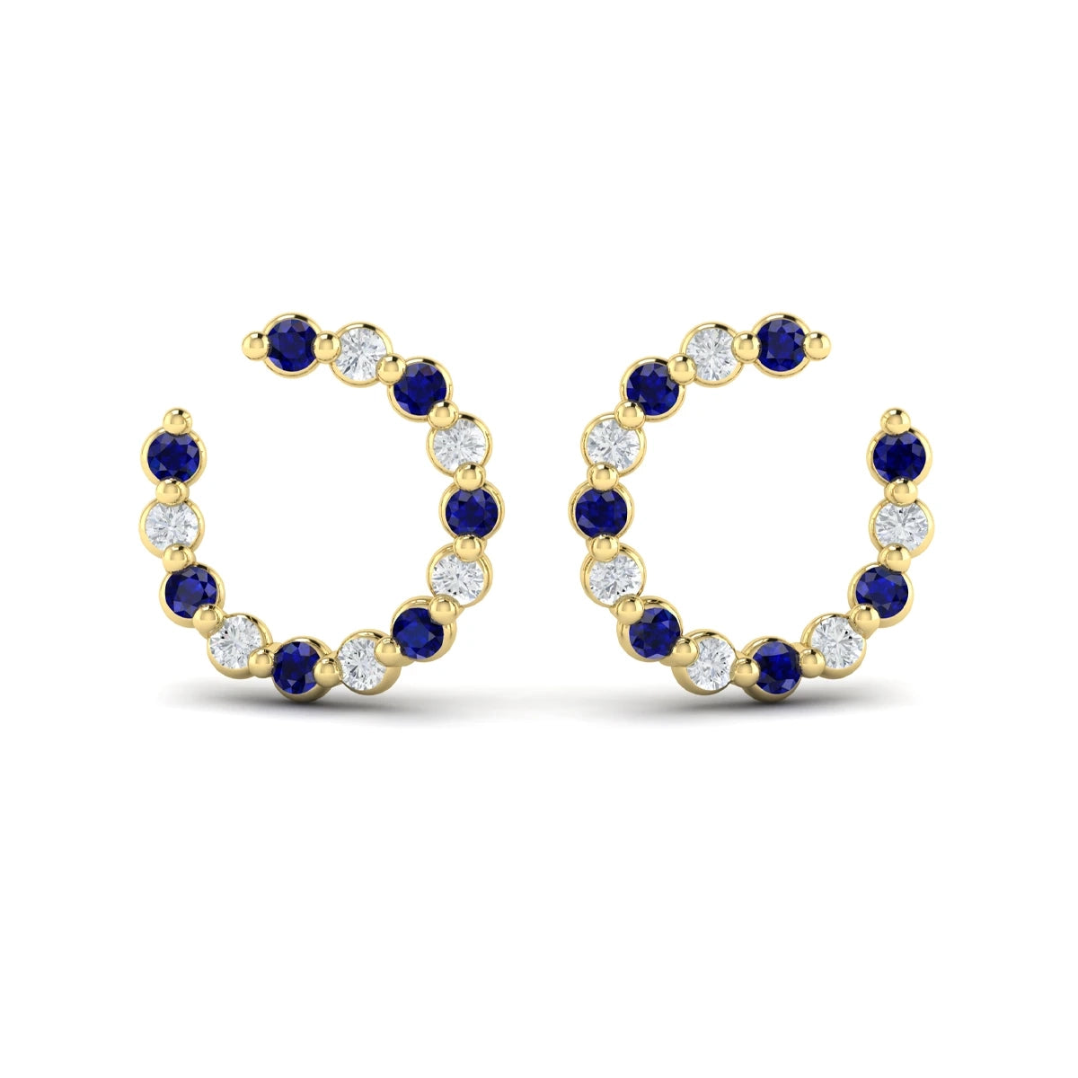 Forward-facing Diamond and Blue Sapphire Open Hoop Earrings Yellow Gold