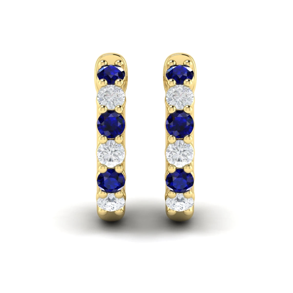 You're reviewing: Forward-facing Diamond and Blue Sapphire Open Hoop Earrings Yellow Gold