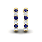 Forward-facing Diamond and Blue Sapphire Open Hoop Earrings Yellow Gold