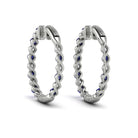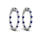 Inside Out Diamond and Blue Sapphire Hoop Earrings White Gold