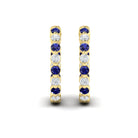 Inside Out Diamond and Blue Sapphire Hoop Earrings Yellow Gold