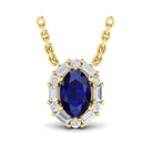 Oval Sapphire and Diamond Baguette Pendant Yellow Gold