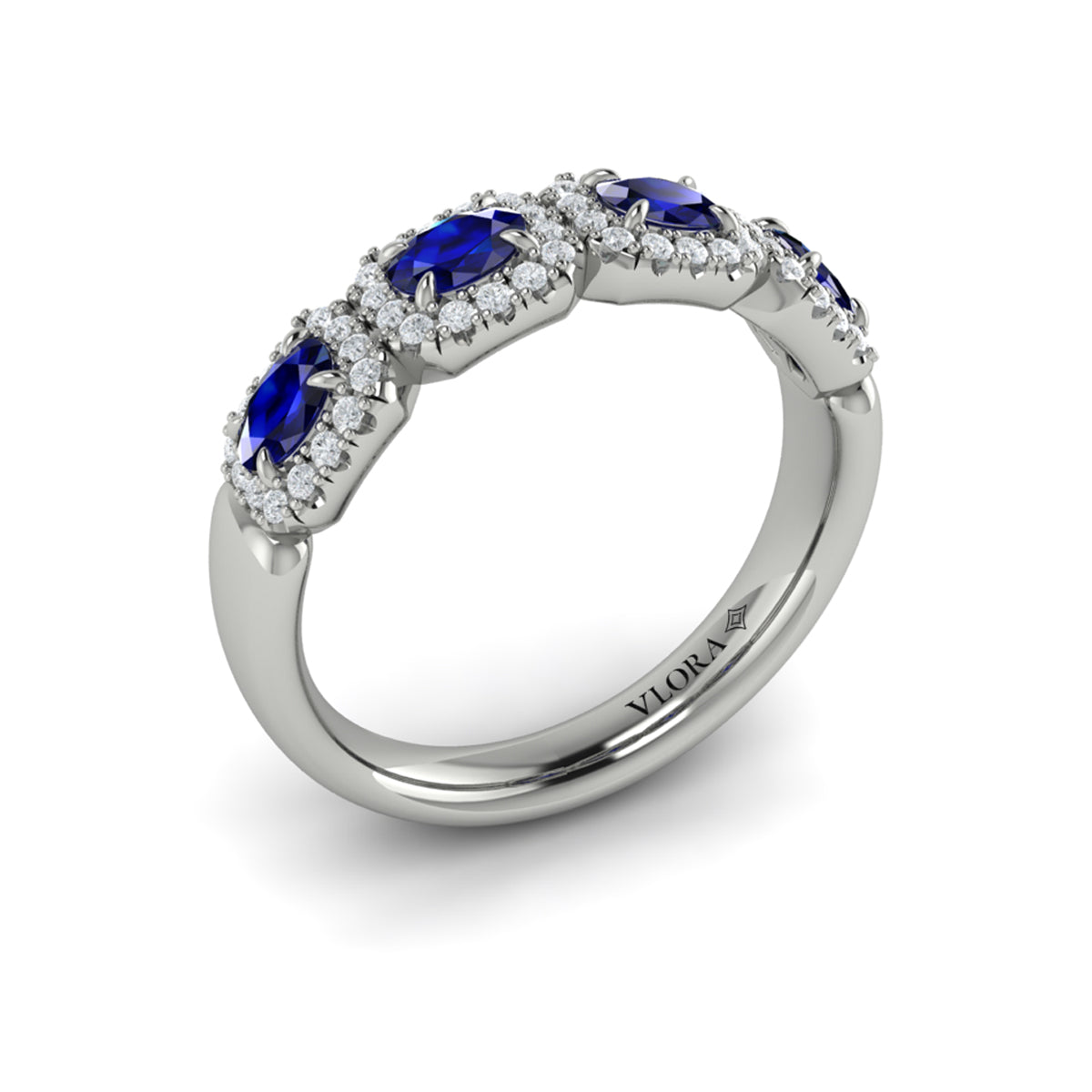 14K White Gold Round Five Stone Sapphire and Diamond Engagement Ring