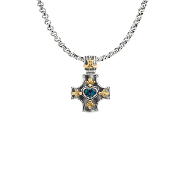 KONSTANTINO STERLING SILVER & 18K GOLD LONDON BLUE TOPAZ CROSS