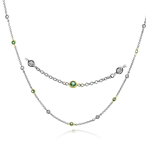Set with 1.18 ctw of white diamonds and 1.32 ctw of lovely green emeralds, this modern necklace adds the perfect touch of color and sparkle to any outfit.