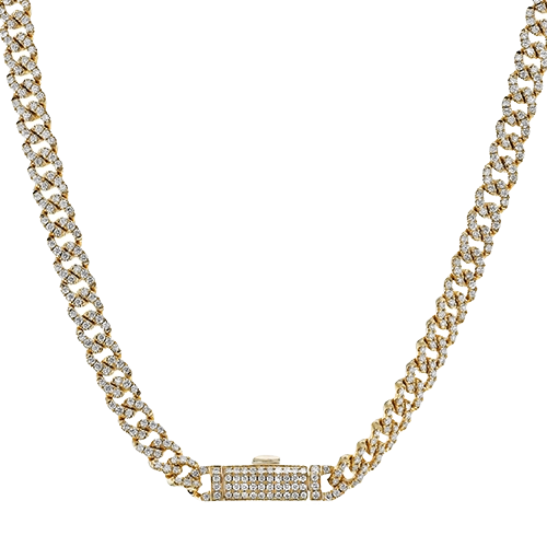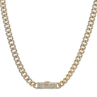 A sylish white gold curb link necklace dazzles with 4.0 ctw. Of diamonds and a diamond encrusted box lock, 18"