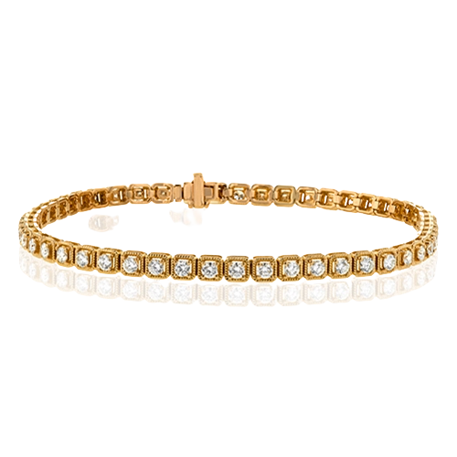 A modern take on a stackable diamond tennis bracelet, this timeless rose gold design is setting with a total of 2.00 ct of white diamonds.