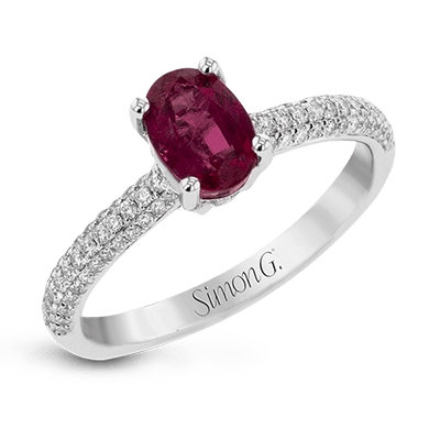 This graceful ring features .31 ctw of white diamonds set into the ring with a .90 ctw ruby.