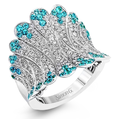 The contemporary design of this white gold ring is elevated by 1.10 ctw of white diamonds and .65 Paraiba tourmaline stones in an elegant pave setting.