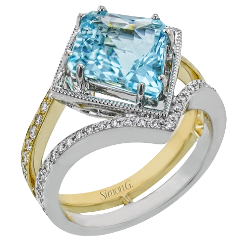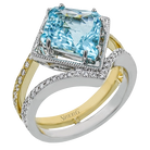 This one of a kind color ring stuns in two-tone gold with a split shank diamond band 0.46 ctw, and a paraiba tourmaline center 3.20 ctw