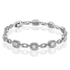 This gorgeous bracelet incorporates 2.07 ctw of round diamonds and 1.25 ctw of baguette diamonds into Mosaic designs which give a lovely, vintage appeal to this 18k white gold piece.