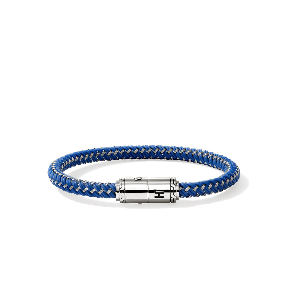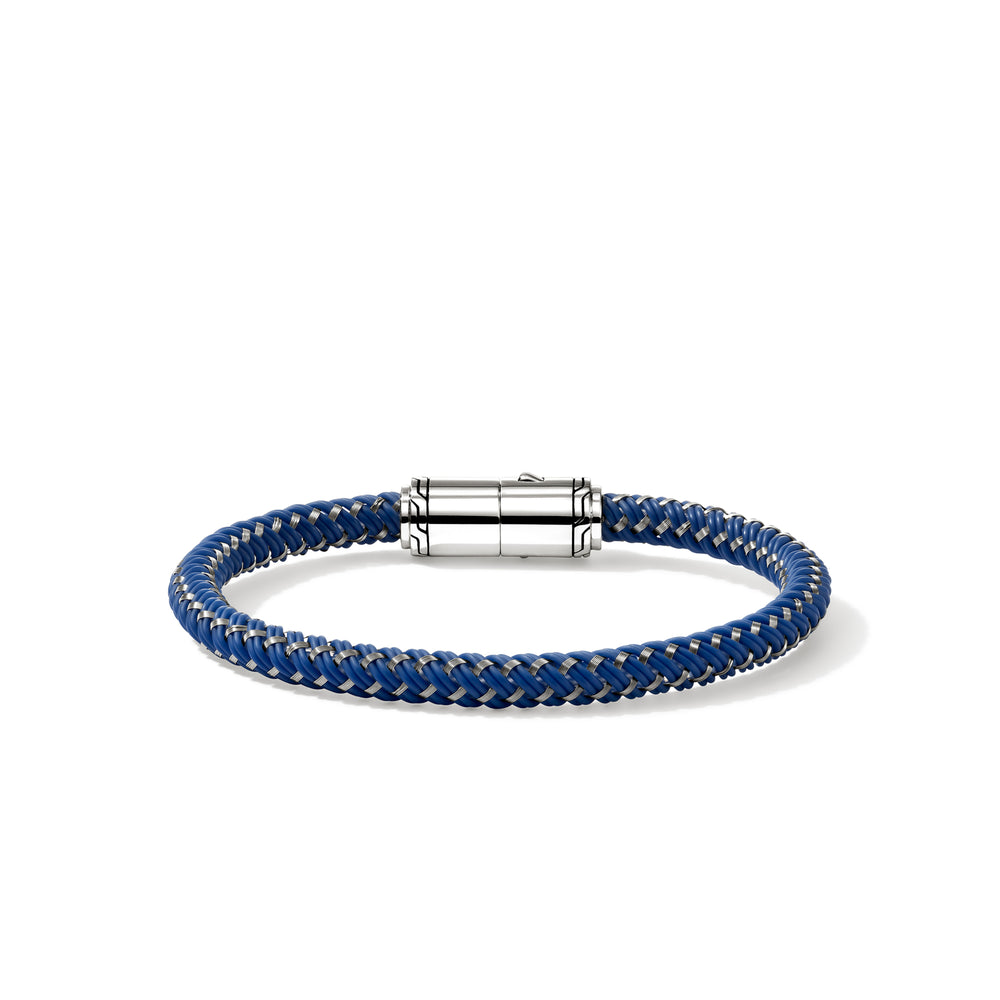 Artisanship meets utility. Featuring an ultra-secure pusher clasp engraved with the John Hardy hallmark, this bracelet is crafted by hand in technical woven rubber and reclaimed sterling silver.