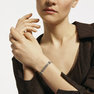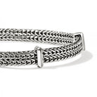 A seamlessly woven bracelet with a slim profile and knife edge link accents. Artisan handcrafted in reclaimed sterling silver.