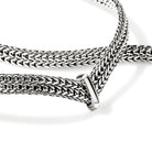 A seamlessly woven necklace with a slim profile and high-shine knife edge link accent. Artisan handcrafted in reclaimed sterling silver.