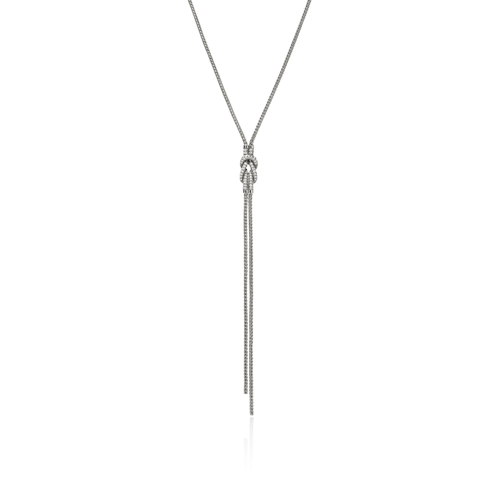 This refined Y-necklace features John Hardy's signature Love Knot motif. Artisan handcrafted in 100% reclaimed sterling silver and ethically sourced white diamonds.