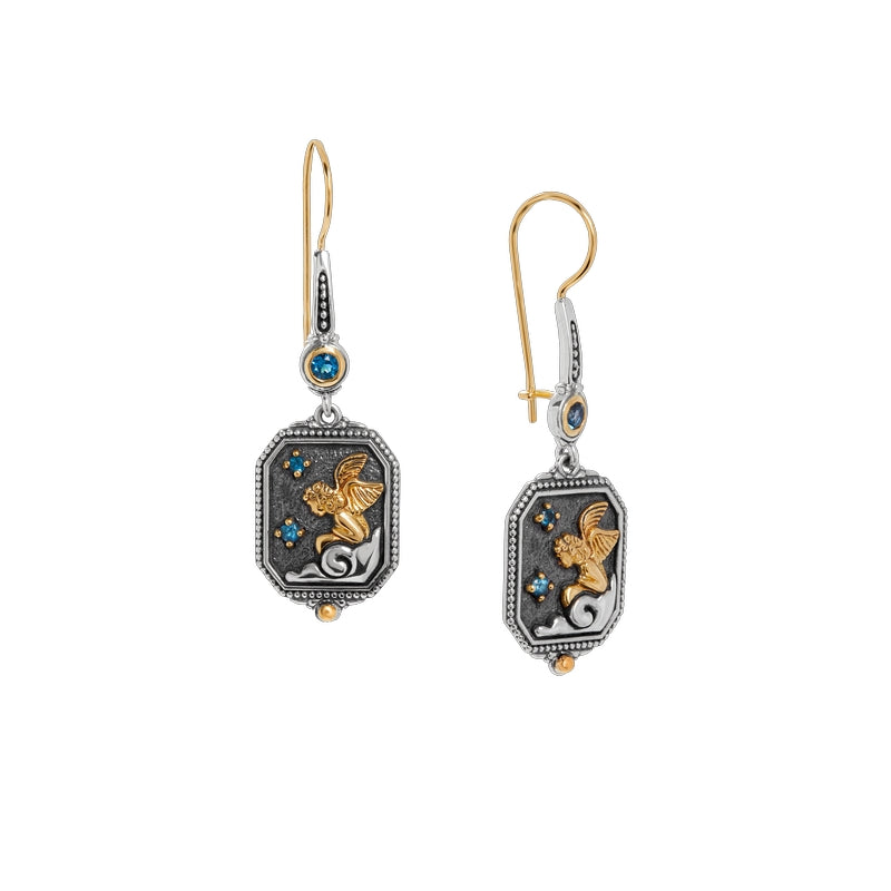 KONSTANTINO ANGEL RECTANGLE DROP LONDON BLUE TOPAZ EARRINGS
