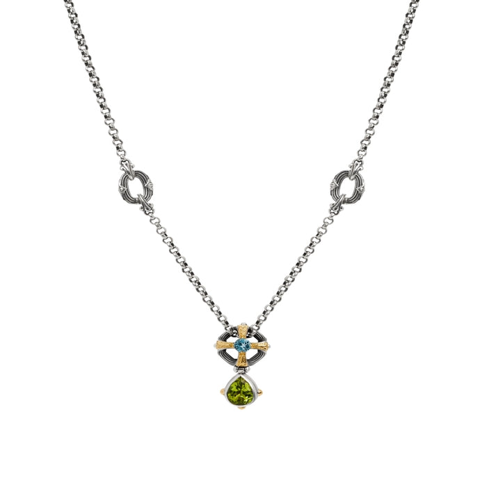 KONSTANTINO STERLING SILVER & 18K GOLD BLUE TOPAZ & PERIDOT NECKLACE