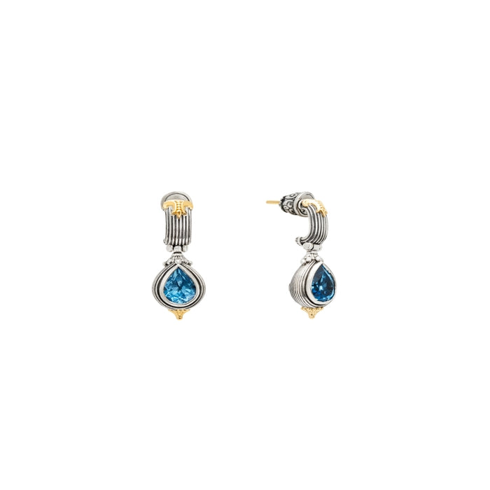 KONSTANTINO STERLING SILVER & 18K GOLD STERLING SILVER SWISS BLUE TOPAZ EARRINGS
