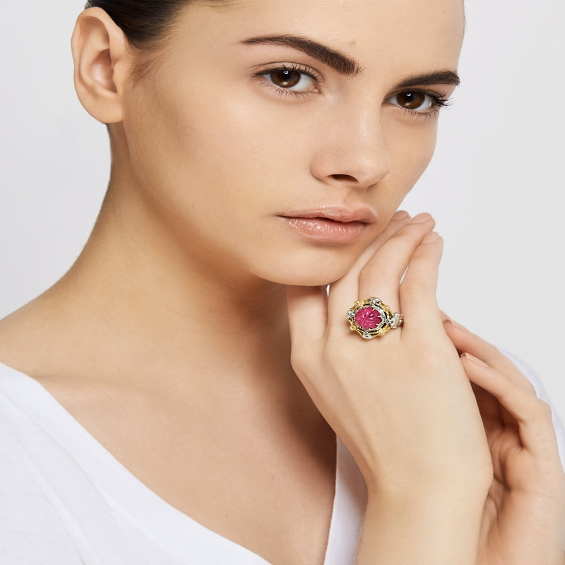 KONSTANTINO STERLING SILVER & GOLD CRYSTAL PT DOUBLET RING