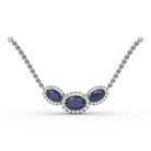 This three stone oval sapphire and diamond pendant comes in a variety of material types like 14k white gold, yellow gold, rose gold and can be customized. Fana gemstone pendants are perfect for that special woman in your life