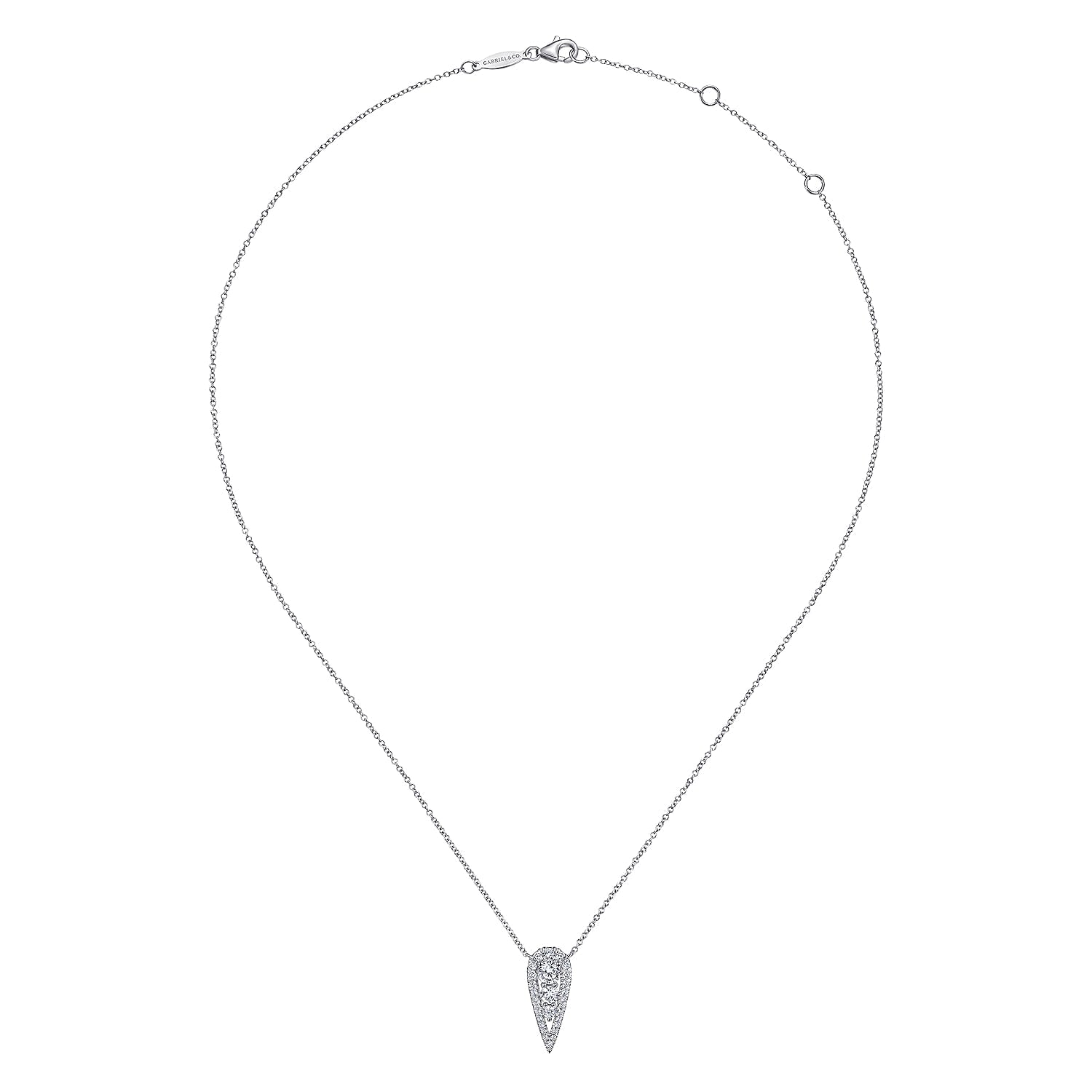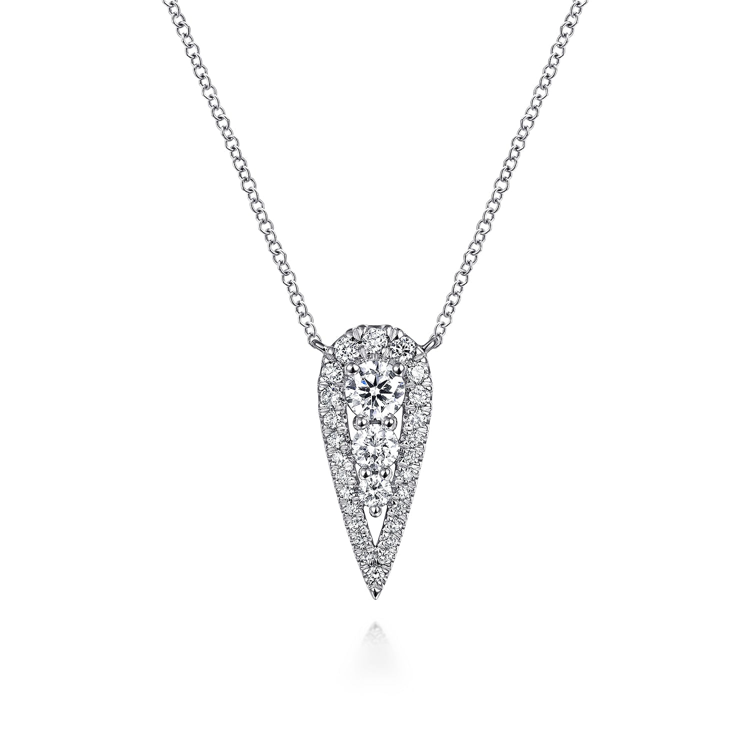 14K White Gold Inverted Teardrop Diamond Pendant Necklace